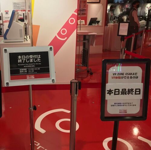新型コロナの影響で、オープン後1年で8月31日に閉場してしまったMAZARIAに続き、VRZONE OSAKAも本日で閉館。