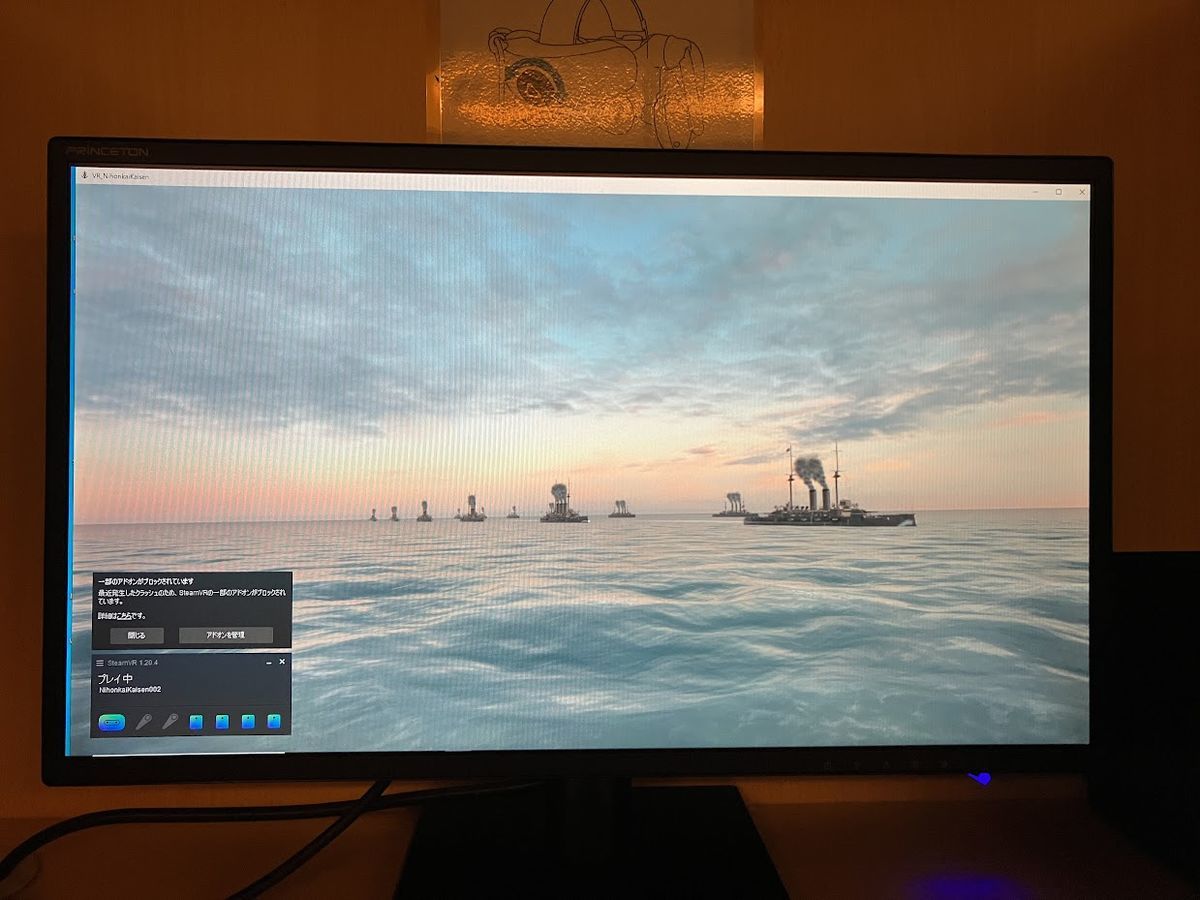 展示施設内には、『VR日本海海戦』コーナー。6台のVIVE HMDがあり、日露戦争中に東郷司令長官ひきいる連合艦隊とロシアのバルチック艦隊との戦闘を、先程実際に登った艦橋からの視点で、5分間にまとめた映像を体験できます。