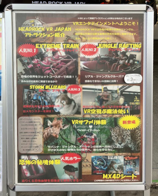 HEAD ROCK VRは、ゲーム性のあるものはありませんでした(一時期あったようですが、やはり運営に制約があるのでしょう)。そのため、1回体験したらおしまいでリピートしたいと思うものがあまりないというのが、個人的には少し残念です。ただ、これは遊園地内の施設ということで、老若男女楽しめるものを多くした結果なのだと思います。
