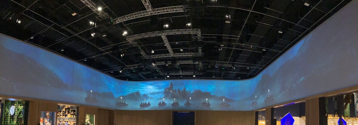 17時になりツアー開始。各映画作品のポスターを3D化したモニュメントのある通路を抜け、プレシアターで注意事項など。メイシアターでハリーポッターの概略説明を鑑賞(このシアター内は撮影禁止)。そして大広間への扉が開きツアーがスタート。