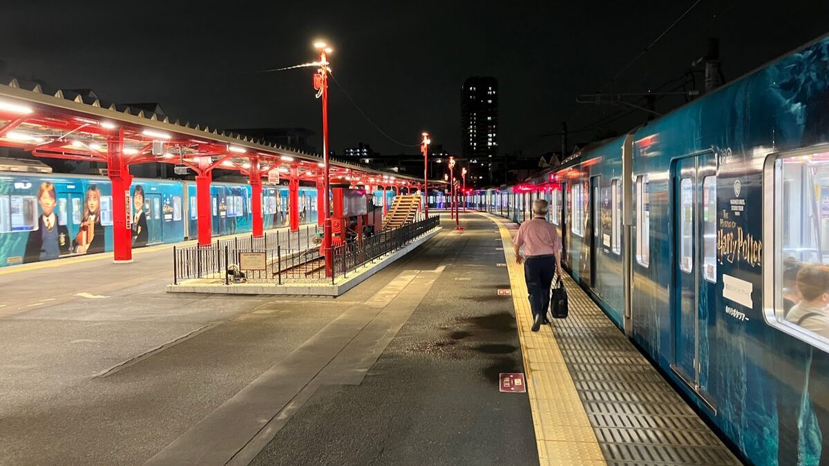 帰りの豊島園駅は、2線ともスタジオツアーラッピング車輌でした。通常の広告ラッピング車輌はせいぜい1〜2編成なのですが、現在このラッピング車輌は3編成あります。8輌編成で各駅列車運用がメインなので、池袋〜豊島園間を利用していると特によく見かけますね。