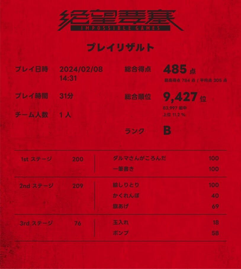 うち2回、3rdステージに到達できましたが、特に「玉入れ」が全然入らず、ステージクリア条件の130点の半分にしか届きませんでした…。
